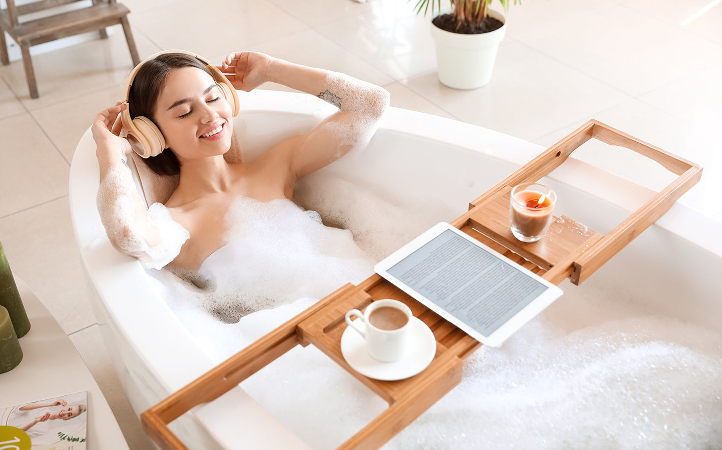 The bath caddy is fully adjustable to fit any bathtubs with its extendable slide-out arms. The total closed or folded